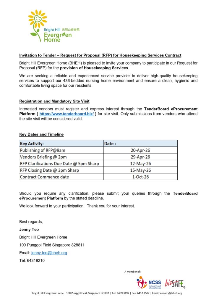 Open Tender Notice: Provision of Housekeeping Service Contract